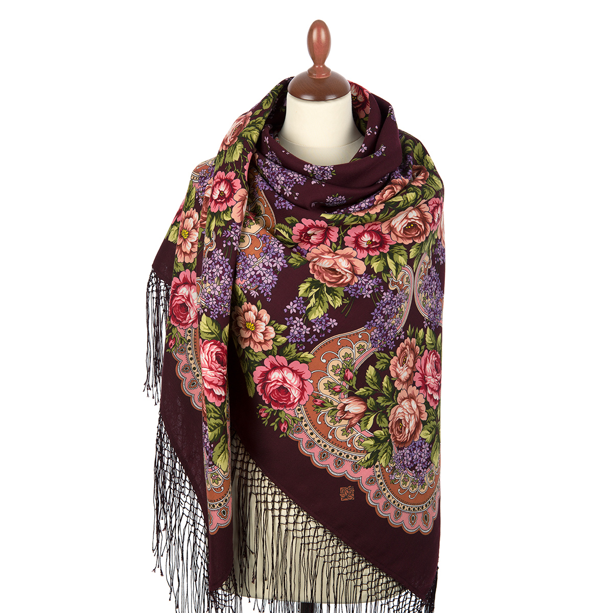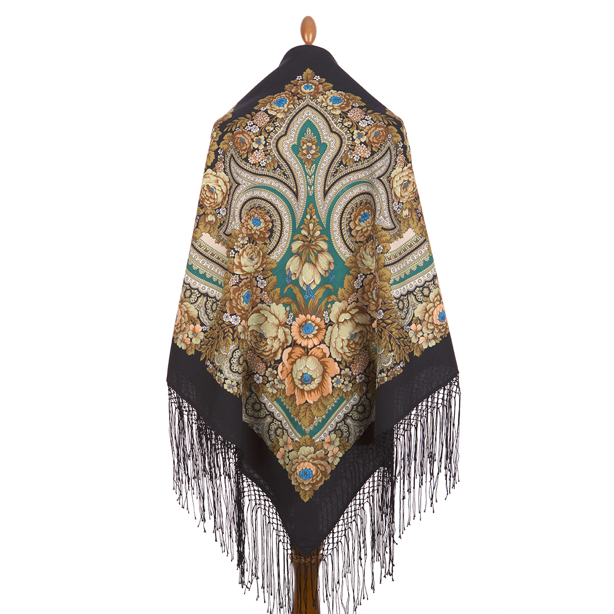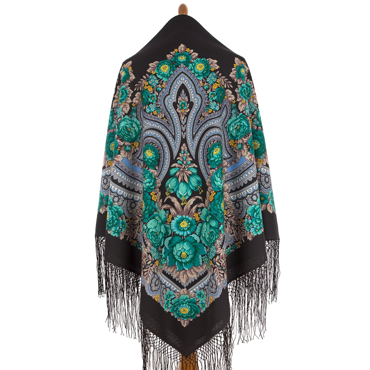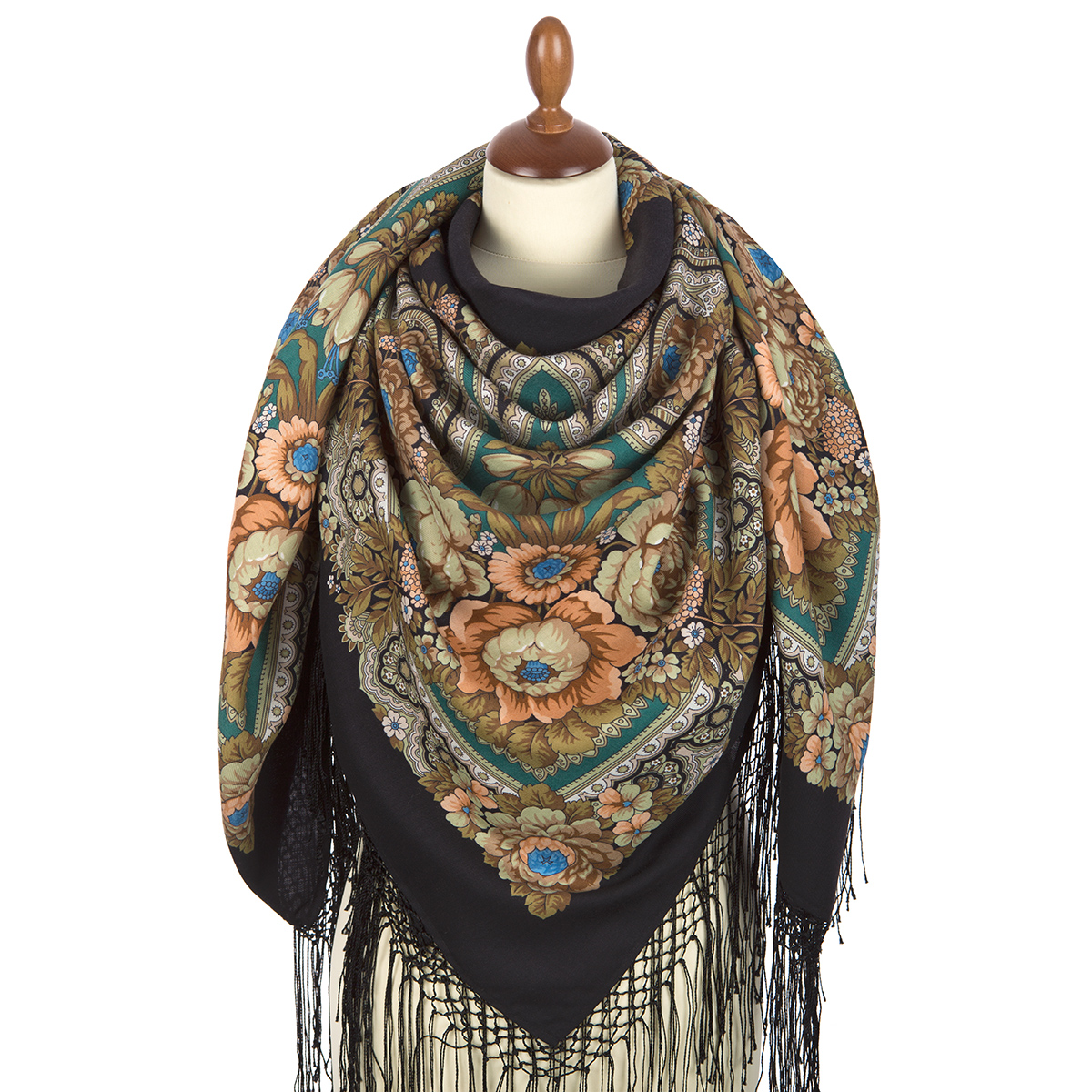 Платок из уплотненной шерстяной ткани с шелковой бахромой, 148х148см.