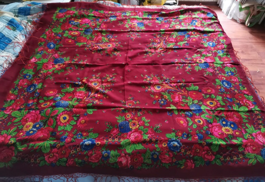 Вопрос, могла ли шаль Русская красавица быть еще и в таком варианте, или ее уже додумали малые республики, на форуме попадалась шаль с пустым и заполненным средником, не помню автора, точно Павловопассадский выпускали их в обоих вариантах. Бахрома у платка такая же как на фото с форума тонкая.