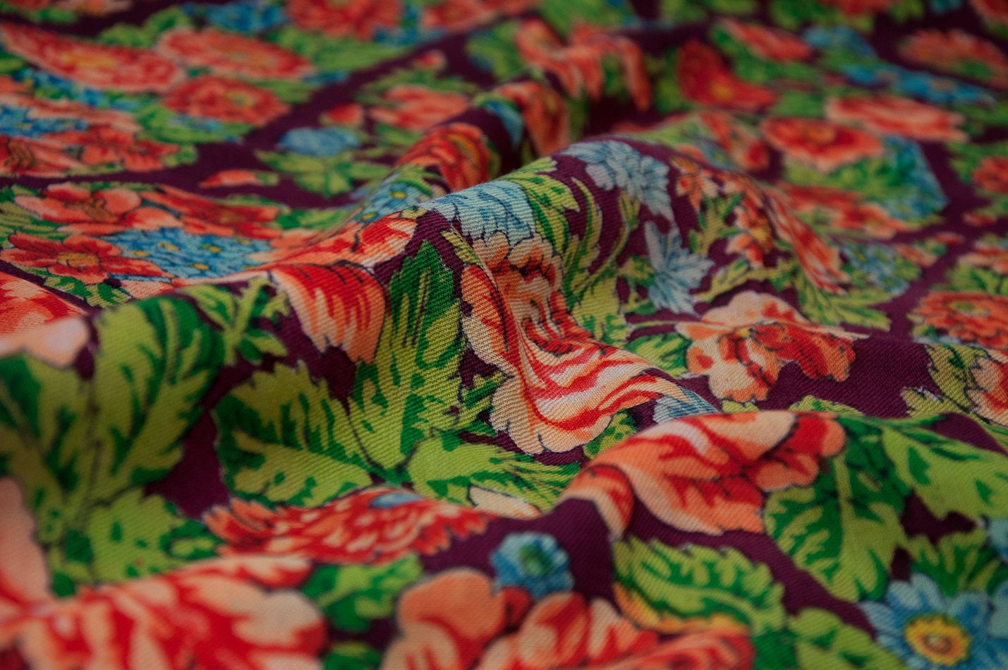 Русский сувенир старой печати на бордовом грунте с синими цветочками (новый на форуме)