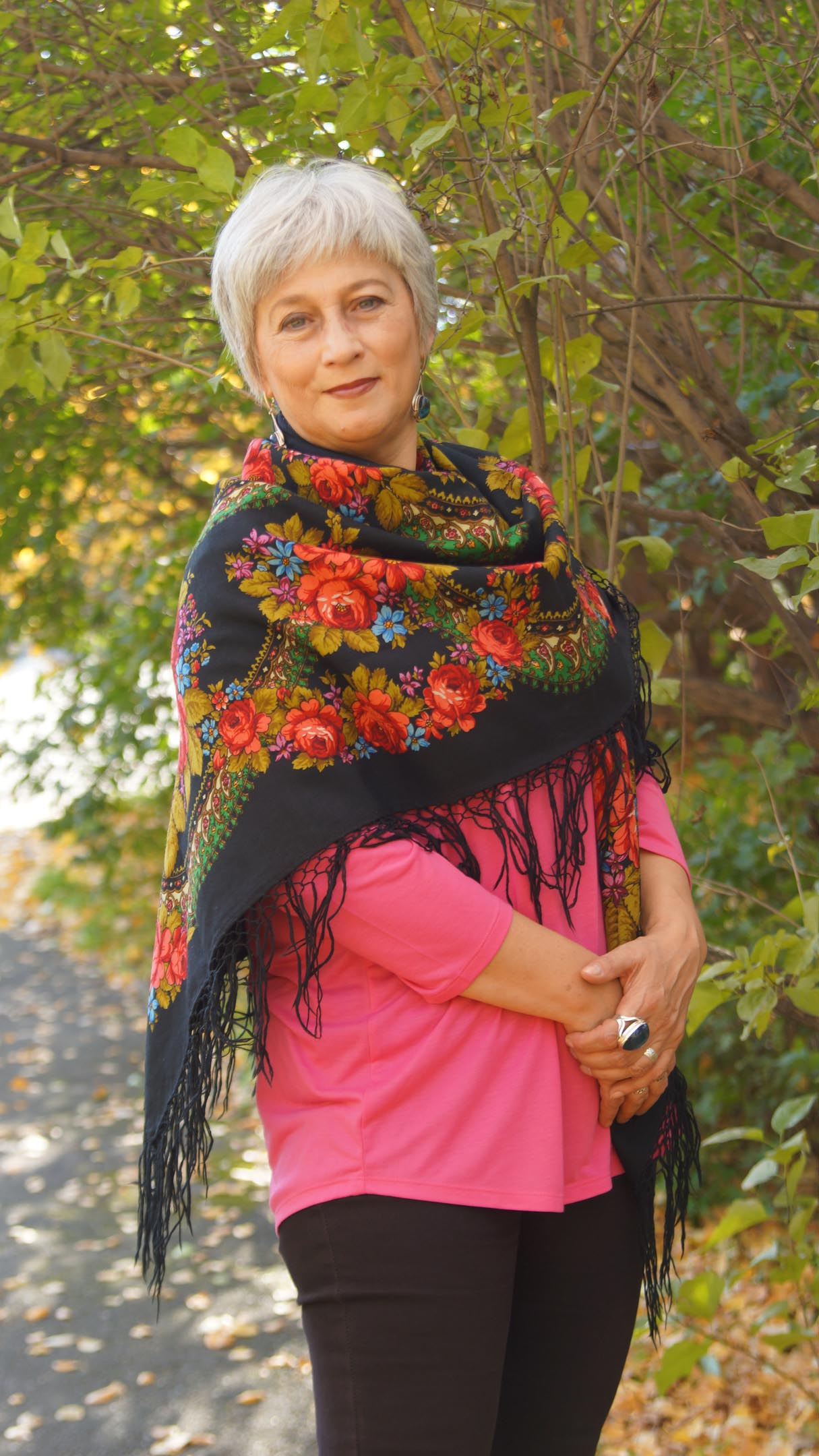 На хозяйке шали Наталье можно рассмотреть поподробнее.