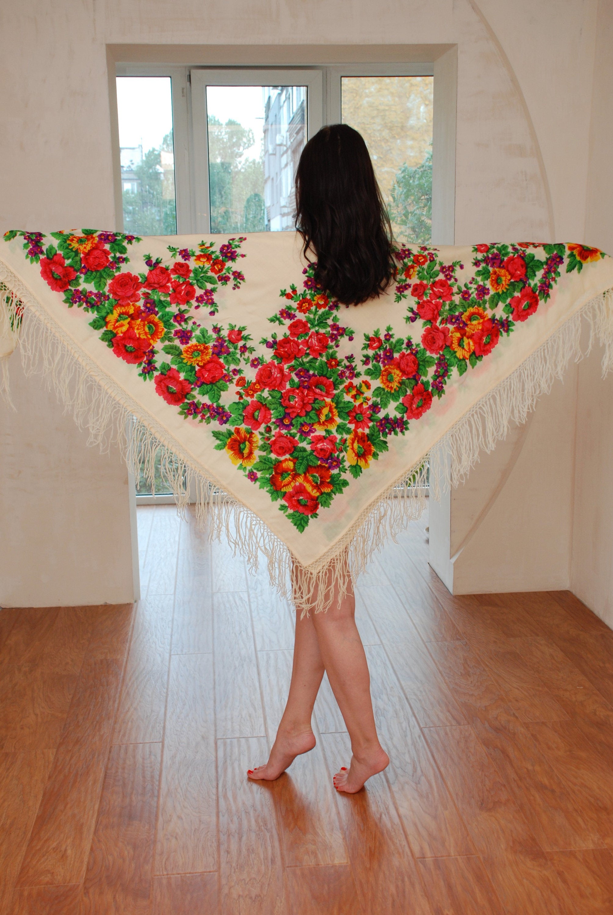 На просторах интернет сообщества нашла шаль Белый розы. Мне как дилетанту показалась ручная набойка. Сомневаюсь . так как Елена Владимировна как то писала что ее никто не видел. Посмотрите ошибаюсь ли я?