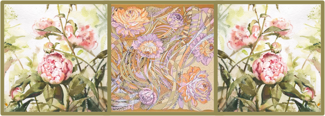 Прекрасные, нарядные, пышные, махровые пионы расцветают на платках Ольги Немешаевой . Эти восхитительные цветы покоряют своей красотой, романтичностью и нежностью.