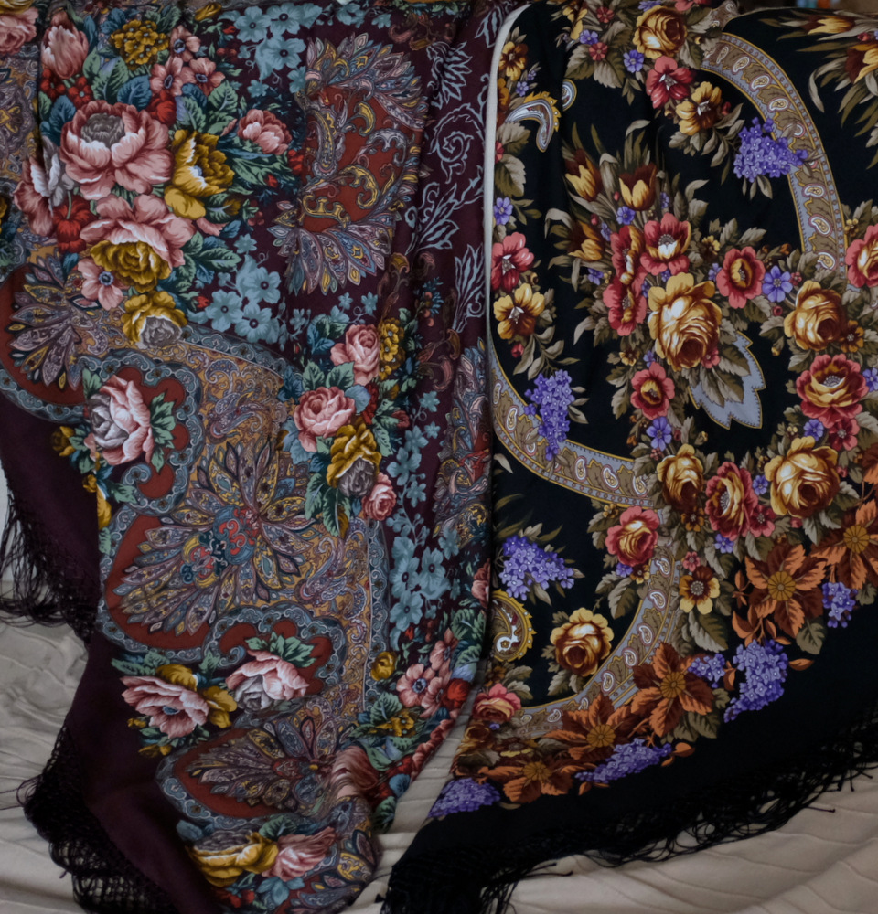 Выводы о степени розовости и бежевости розочек делайте сами. На мой взгляд, они одинаковые. А шали разные!