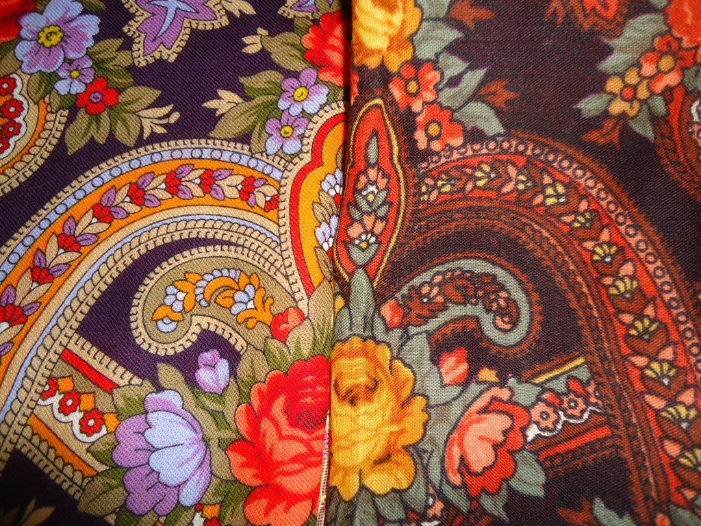 (Кликните, чтобы почитать, что спрятано под катом)...Повторю, но экземпляр старой печати, который я примеряла, был вообще глухой, казался каким-то грязноватым, очень мне не понравился, а эта красивая и нежная шаль, спокойная. Предполагаю, что и раньше были вариации печати и мне могло просто не повезти. ИМХО 18-ый колорит не для дам с собственными яркими красками, а вот если свои цвета мягкие, то заиграет и подчеркнет.