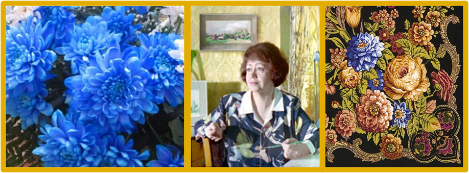 Жёлтые, голубые, красные — все они поражают своей удивительной яркостью и красотой. Оттенки георгинов могут быть совершенно разные. Например в платке «Ежевика» Ирины Дадоновой георгины в голубых тонах сочетаются с розовыми, желтые георгины можно увидеть на платке «Майя» Регуновой Екатерины, георгины красных оттенков - у Фаворитовой Елены на шали «Осенние кружева». Сочетание разных расцветок этого удивительного цветка на платке Регуновой Екатерины «Рябинушка» делают его поистине праздничным и ярким.