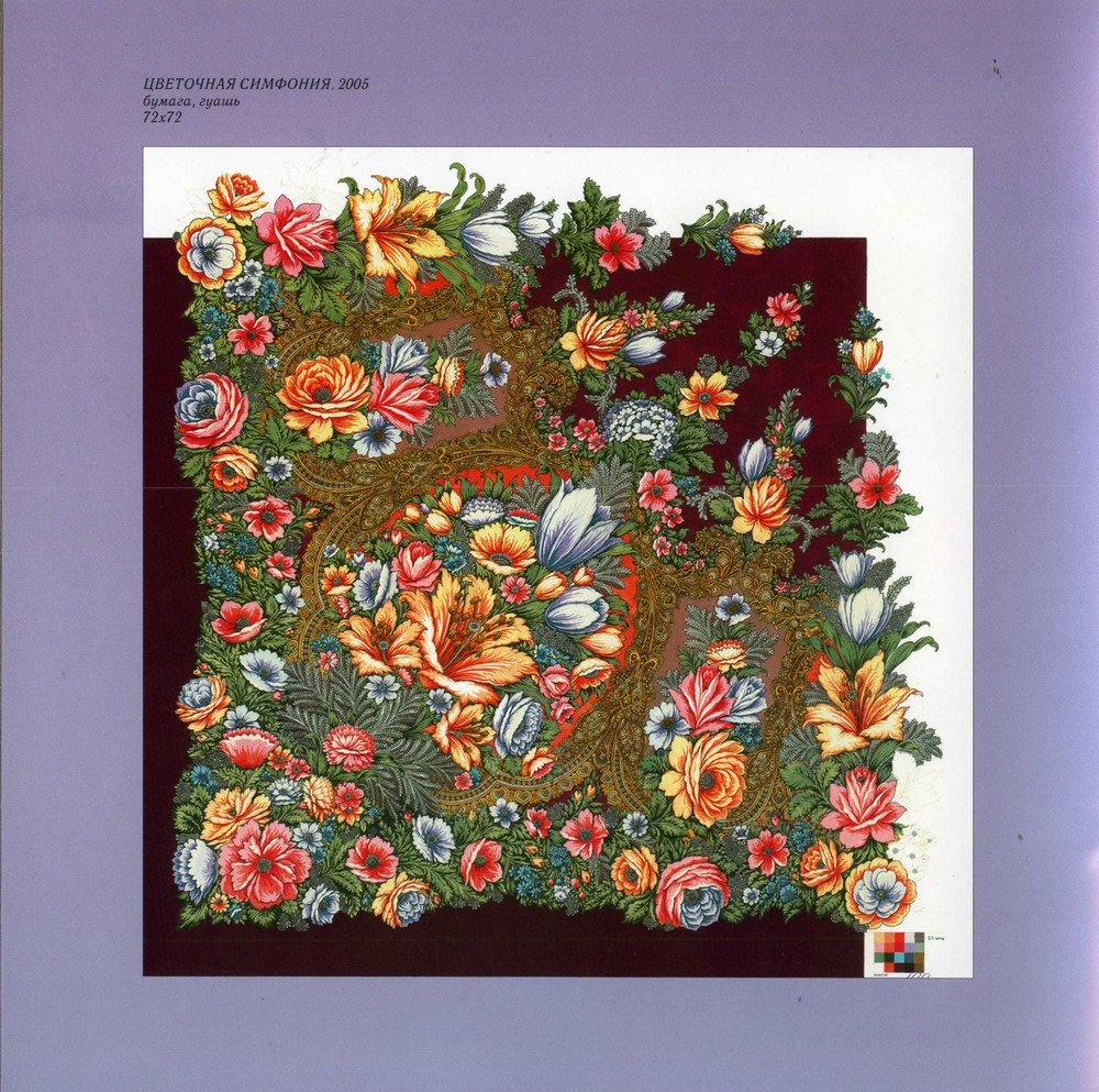 Посчитала по галерее художников всего выпущено 12 шалей в размере 148, 9 больших платков в размере 146 и два в размере 135 по рисункам Татьяны Павловны Сухаревской. В настоящее время на сайте доступно совсем немного. Июньское утро 14,17 колорит и платочки в размере 135- Чародейка зима и Цветочная симфония. Идёт перевыпуск старинных рисунков, восстановленных художницей- Драгоценная, Медальоны и Посадский, но они не всегда есть в наличии.Сложно сказать в каком году в последний раз выпускались большие платочки Сухаревской, наверное это Чародейка зима. ^V^