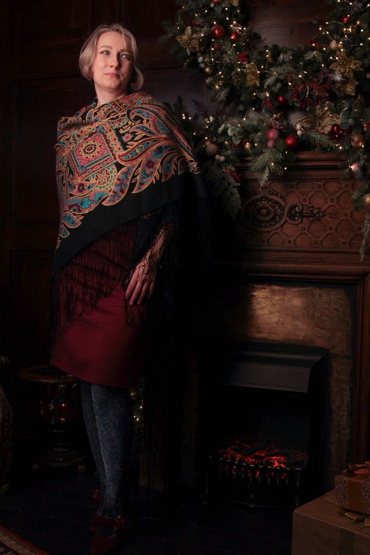 Хочу и я добавить ощущение праздника в тему) Прекрасная, торжественная и неброско-нарядная шаль Таинственный вечер 18. Фото с нашей предновогодней встречи)