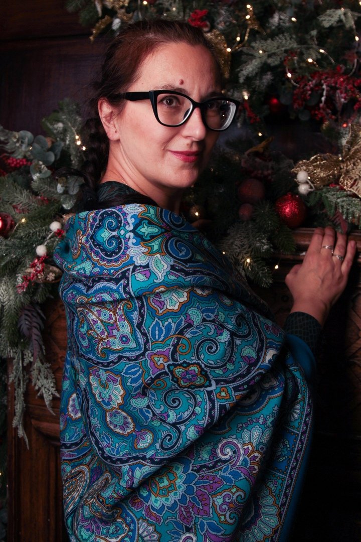 Хочу и я добавить ощущение праздника в тему) Прекрасная, торжественная и неброско-нарядная шаль Таинственный вечер 18. Фото с нашей предновогодней встречи)