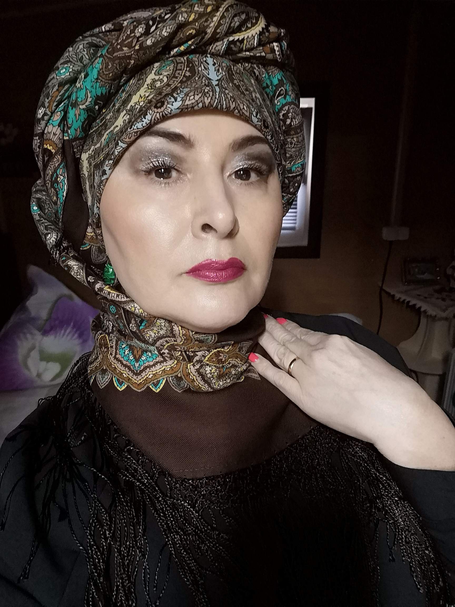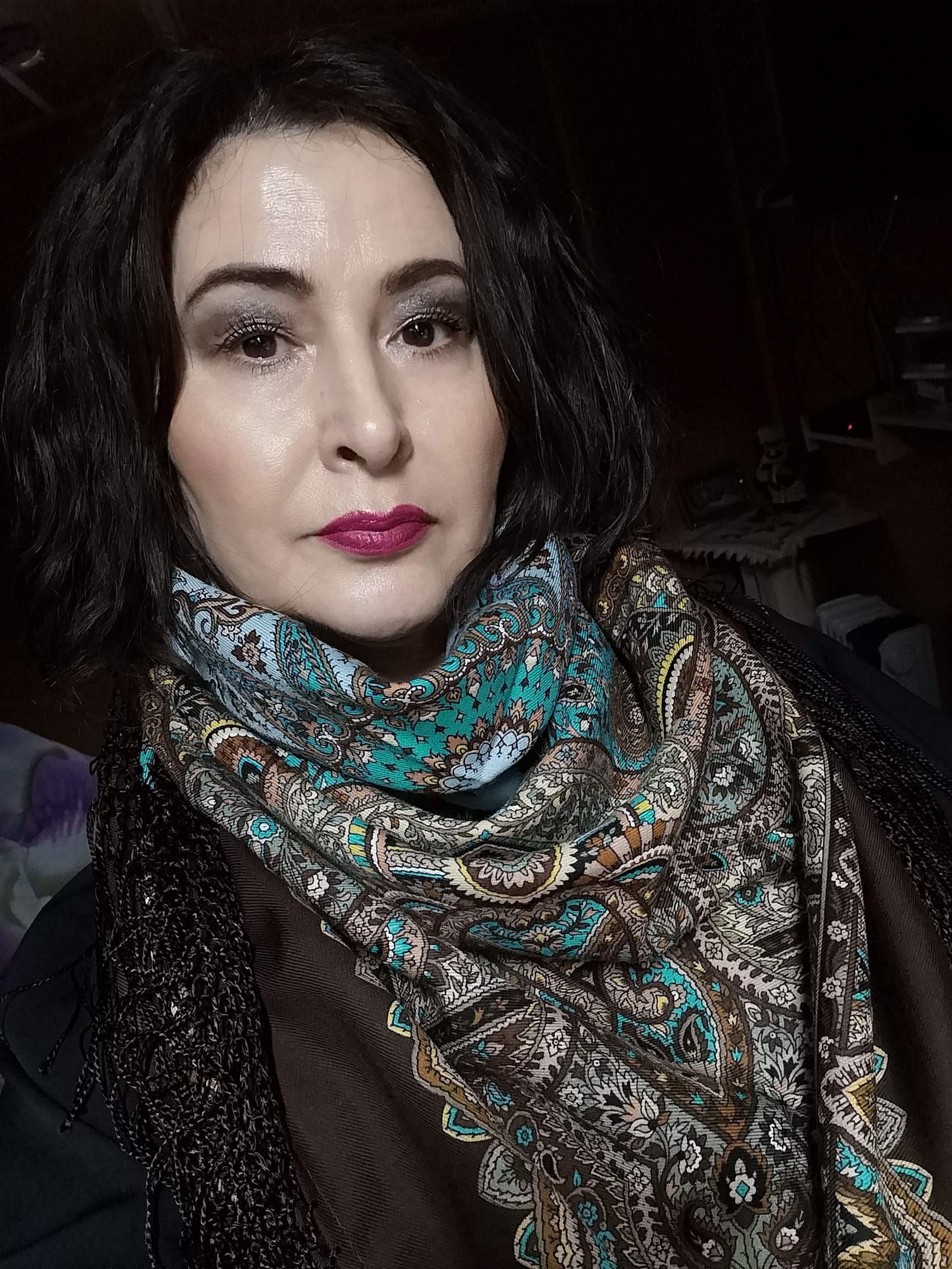 Оленька "Свет мой зеркальце" сразу меня очаровал, много перемерила платков, но в сравнении