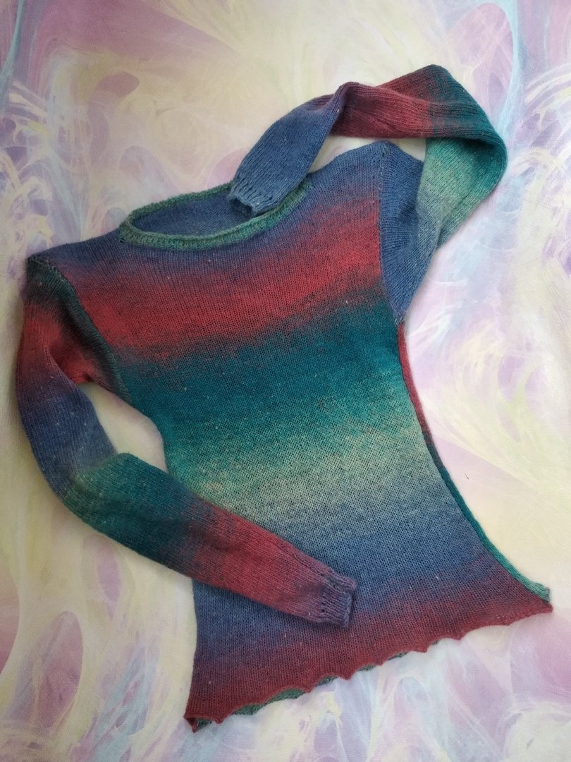 Я очень ценю удобство в одежде, особенно в верхней части, с детства не выношу жестких плечей, узких пройм, дущащих воротников - поэтому крой прямой, рукав реглан, пройма углубленная, вырез открывает ключичную ямку. Под вышитой планкой сборка, которая дает дополнительный обьем в нижней части. Рукав 3/4, локоть уже в "фонарике", это очень удобно в динамике. С изнанки вышивка закрыта второй планкой, никаких торчащих ниток)) Планку горловины с изнанки не подгибала, лен плотный грубо бы получилось - открытый срез подшила вручную, козликом, теми же нитками, что и вышивала. Получилось вполне изюмисто :D