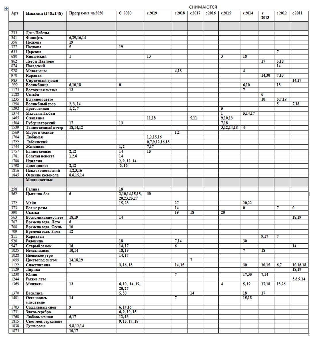 День Победы, Караван, Сиреневый туман и Посадский - потерялись снятые колориты. Это потому, что их и не было в программе 2019? А Подковы две строки. Разные артикулы. Загадочно.