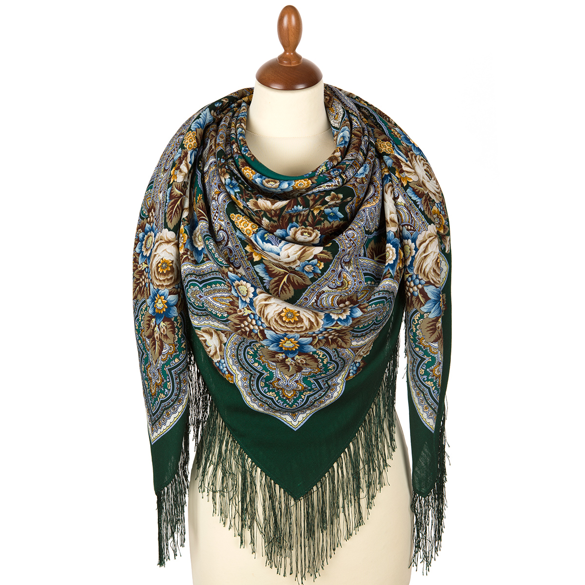 Платок шерстяной с шелковой бахромой, 125х125 см, выпуск 2019 г.