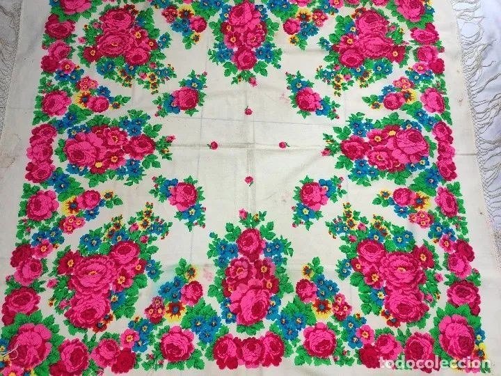 Shum, эта шаль очень похожа на активно носимые в Испании орнаментальные шали, т.н. «de mil colores» («тысяча цветов») или «de cien colores» («сто цветов»), даже не сомневаюсь, что это одна из них. Об этом было здесь viewtopic.php?f=3&t=17933&p=691378&hili ... es#p691378, и там много фото подобных шалей. Помнится, были и с таким рисунком в "окошках" по кайме, как у показанной Вами шали.
