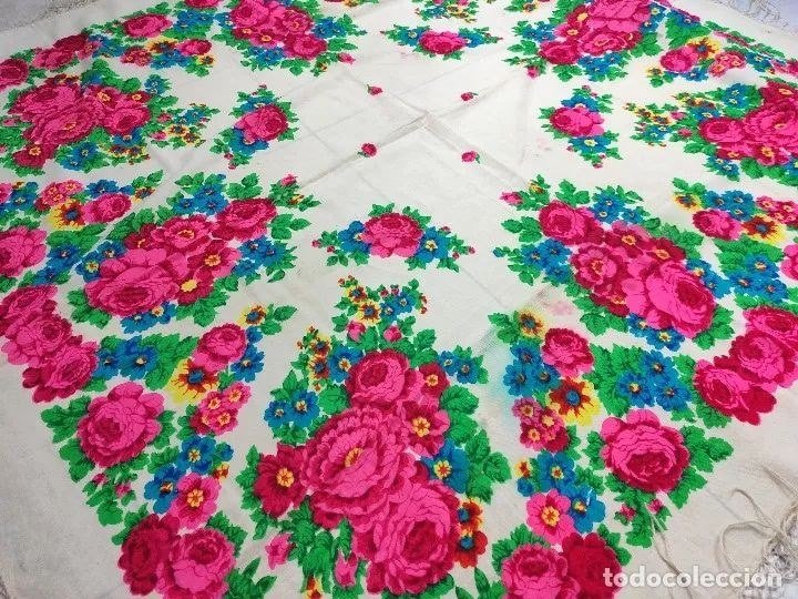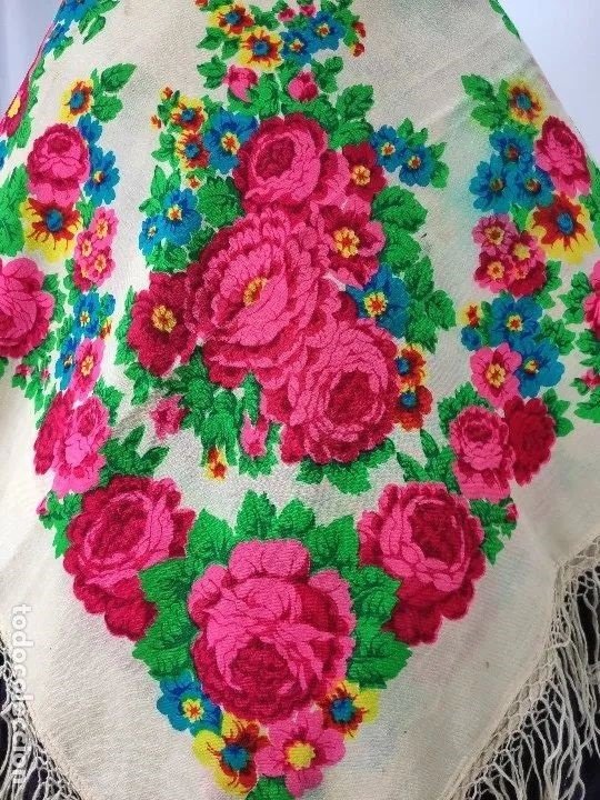 Shum, эта шаль очень похожа на активно носимые в Испании орнаментальные шали, т.н. «de mil colores» («тысяча цветов») или «de cien colores» («сто цветов»), даже не сомневаюсь, что это одна из них. Об этом было здесь viewtopic.php?f=3&t=17933&p=691378&hili ... es#p691378, и там много фото подобных шалей. Помнится, были и с таким рисунком в "окошках" по кайме, как у показанной Вами шали.
