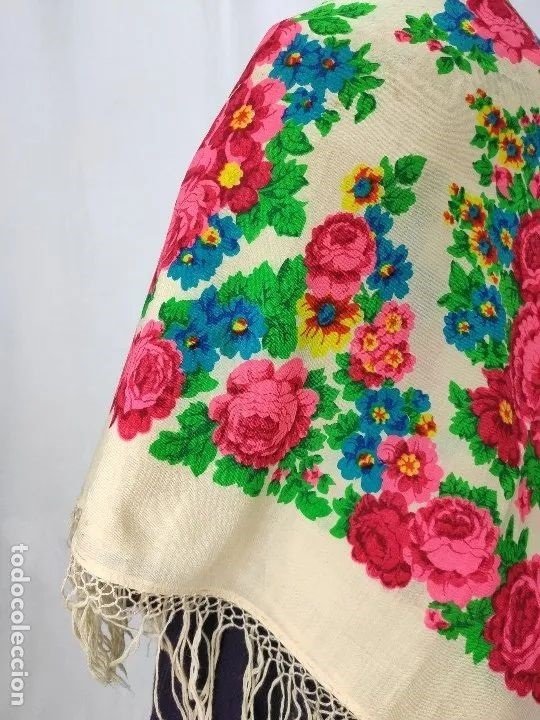 Shum, эта шаль очень похожа на активно носимые в Испании орнаментальные шали, т.н. «de mil colores» («тысяча цветов») или «de cien colores» («сто цветов»), даже не сомневаюсь, что это одна из них. Об этом было здесь viewtopic.php?f=3&t=17933&p=691378&hili ... es#p691378, и там много фото подобных шалей. Помнится, были и с таким рисунком в "окошках" по кайме, как у показанной Вами шали.