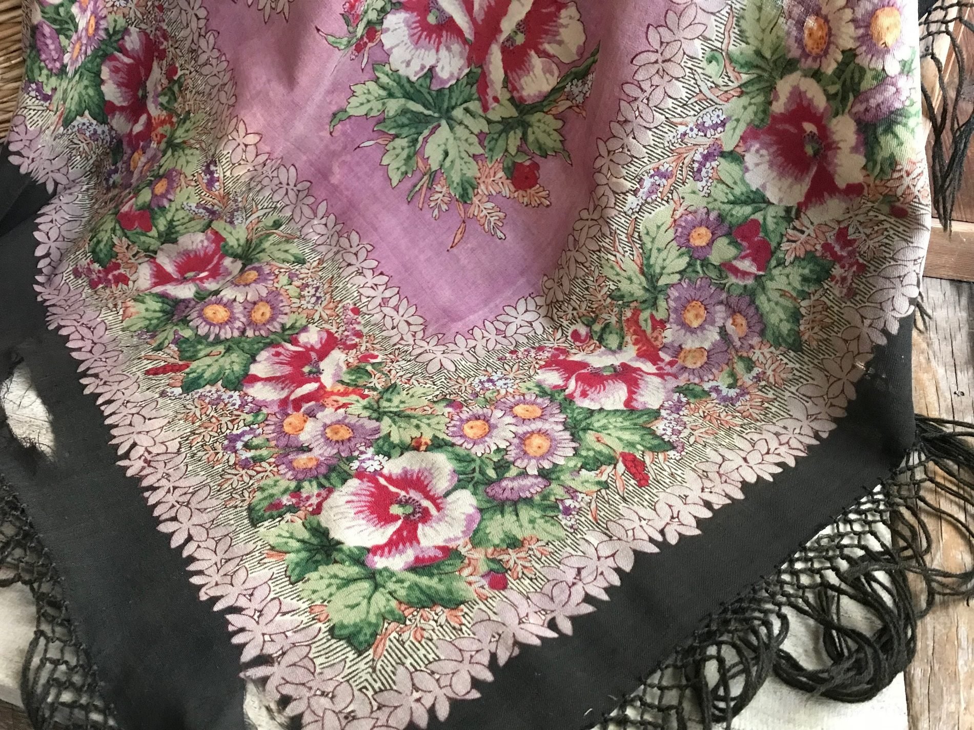 Старинная викторианская шерстяная цветочная шаль, шерсть или смесовая шерсть