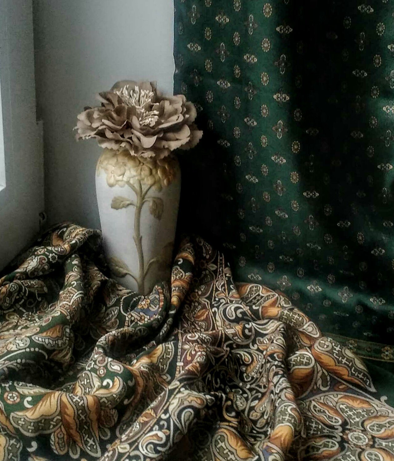 Пополню ещё зелёную тему. Милейшая новинка платочек Пасьянс, вискоза 80см и снятый распродажный мужской шарфик Герцог, оба изделия 9 колорита, худ Е.Жукова. Шарф в жизни менее зелёный, чуть в хаки. Парочкой смотрятся красиво!