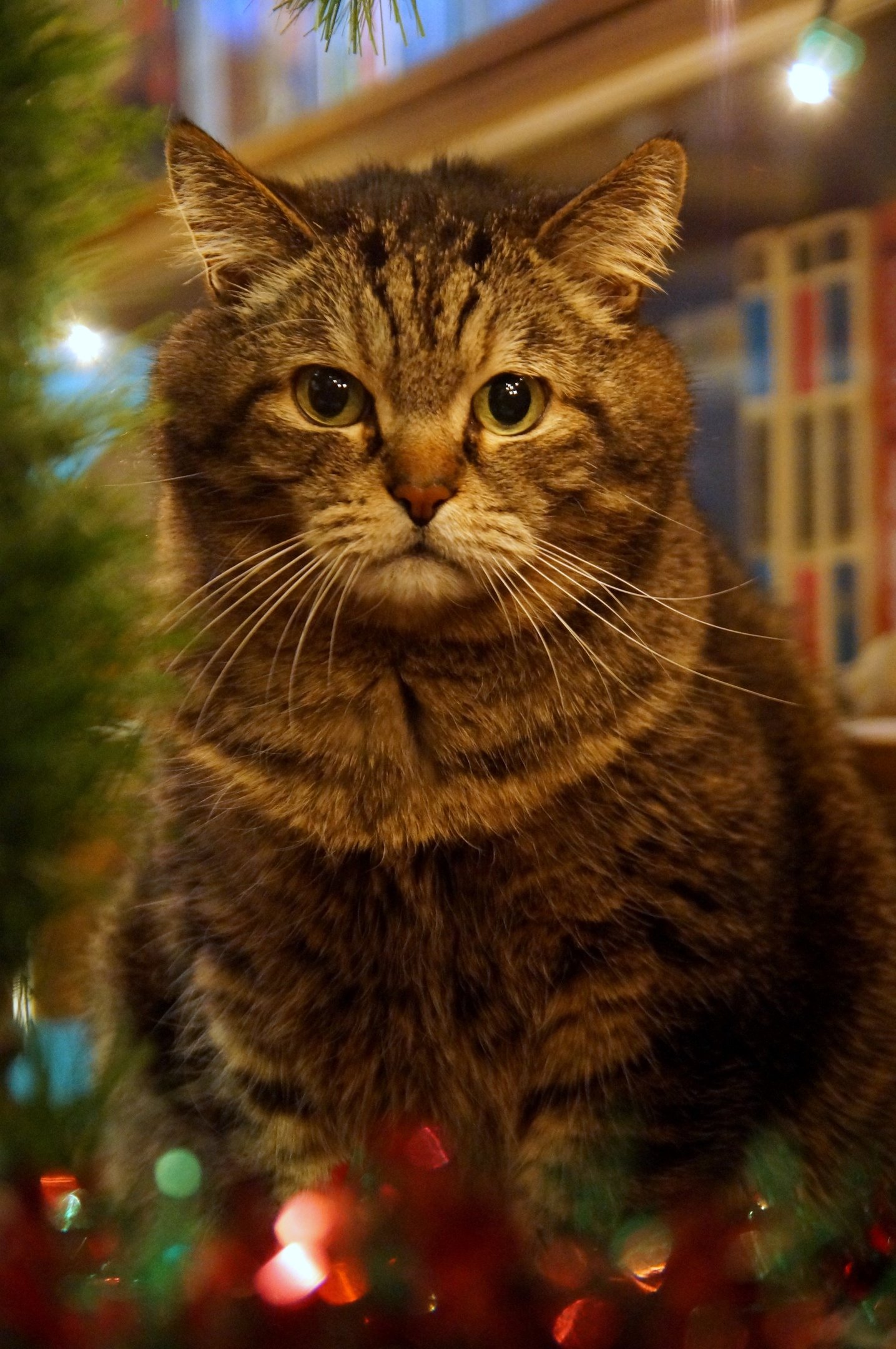 Anni, ему всё ещё интересно. Что-то шуршит, что-то блестит, откуда-то появляются подарки. На нижних ветках только ерунда не бьющаяся. Слава богу, дождик и гирлянду не жрёт и в обезьяну не играет.