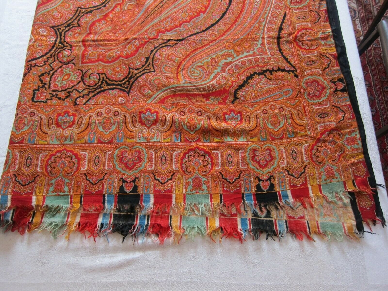 Большая кашемировая шаль, набивка досками, производитель Thierry Mieg & Cie (Эльзас, Франция), XIX в.