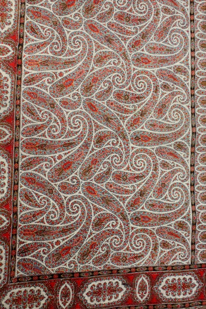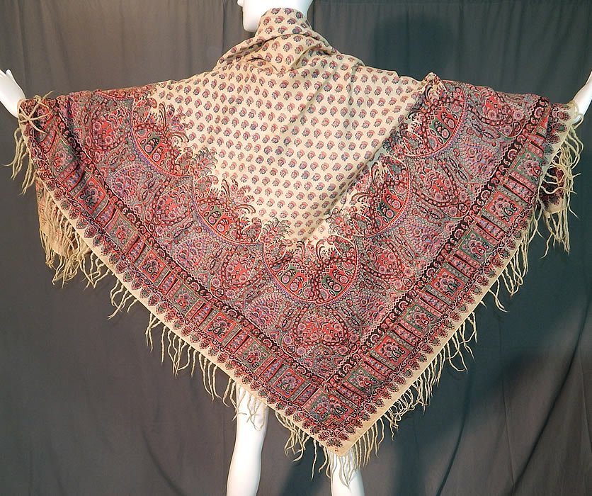 Пишут, что эти ранние шали делали в Норидже (Англия) и Пейсли (Шотландия) с использованием дизайна индийских кашмирских шалей.