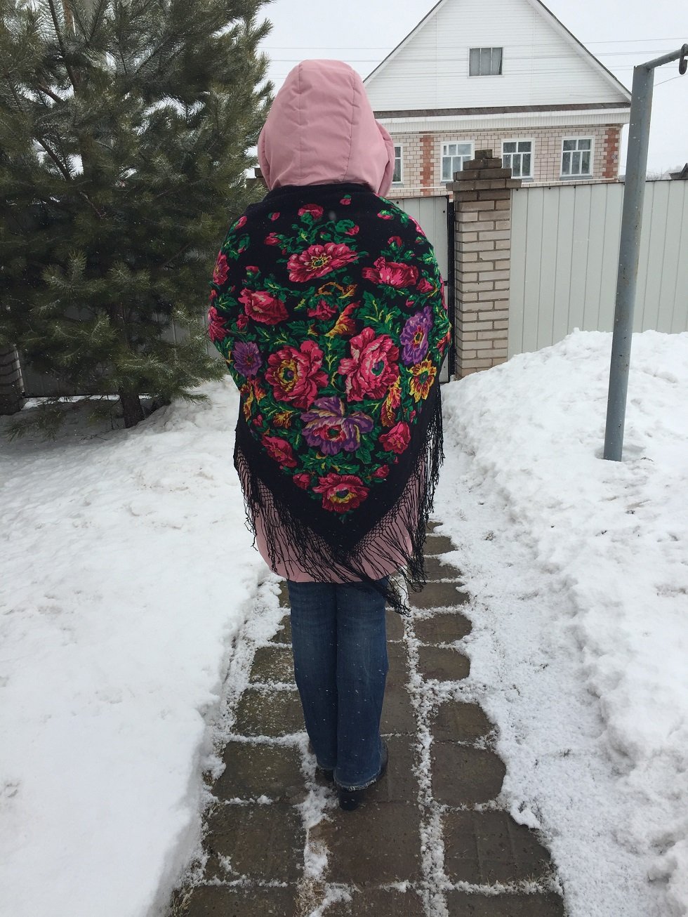 Размер платка уменьшен, элементы орнамента сближены. Рисунок выпускался в нескольких колоритах. На форум прилетело пока только два! Первый по цветовому наполнению близок к оригиналу. Должен быть ещё зелёный колорит. Быть может, прилетит когда-нибудь))