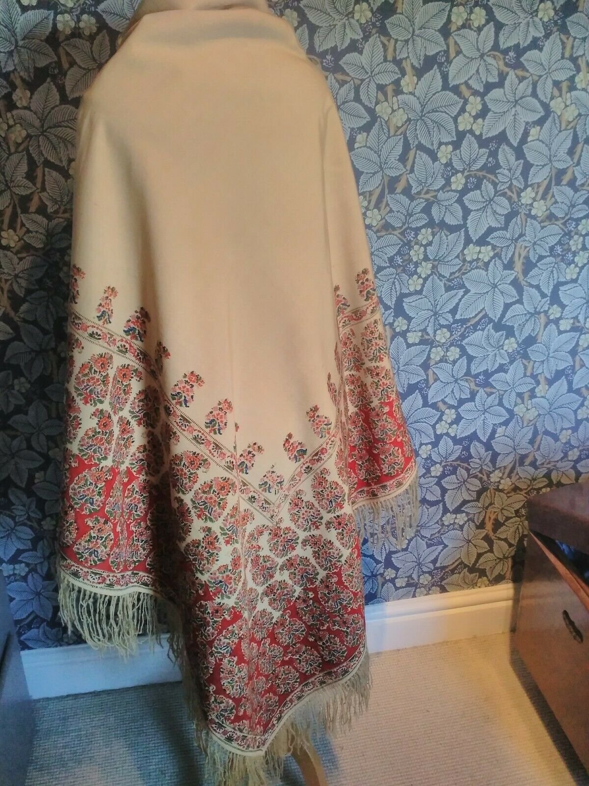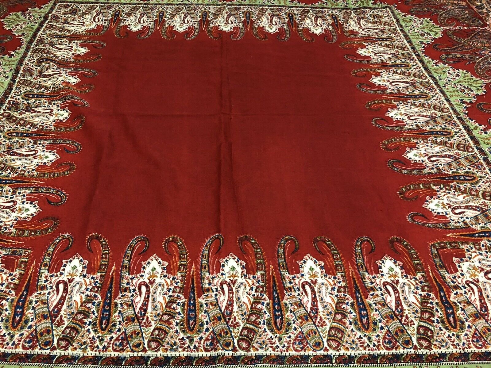 Очень большая шаль викторианского периода из тонкой шерсти с набивным рисунком пейсли, XIX в.