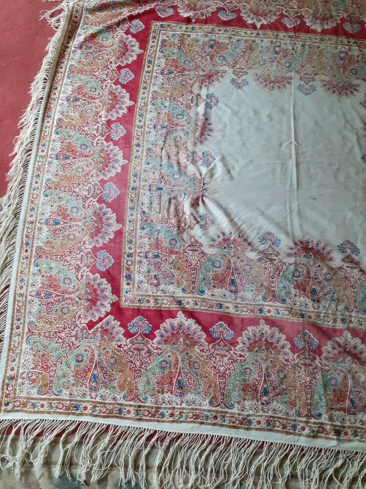 Очень большая шаль викторианского периода из тонкой шерсти с набивным рисунком пейсли, XIX в.