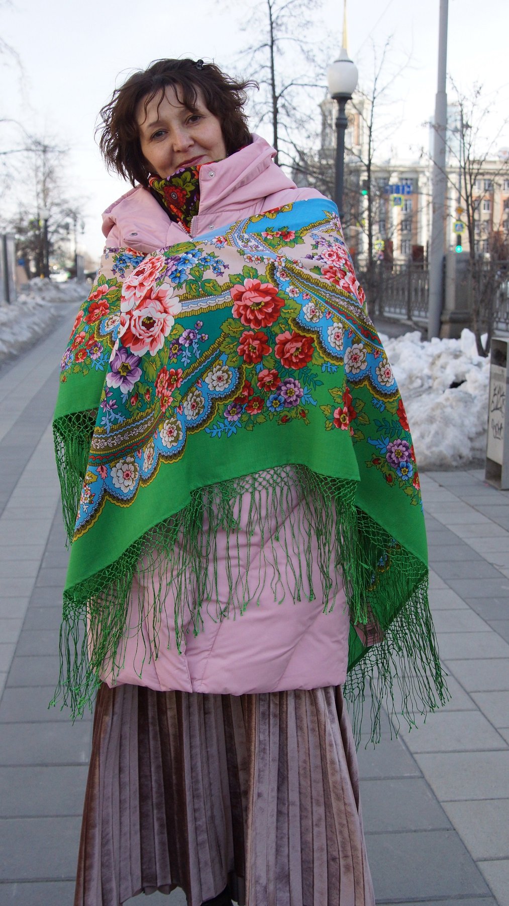 Пока в архиве мало, с рзрешения Татьяны, вставлю ее фото в шали Весна на улице при естественном освещении. Татьяне настолько понравилась шаль и настроение шали совпало с преддверием весны, что Татьяна не снимала ее весь свой небольшой отпуск.