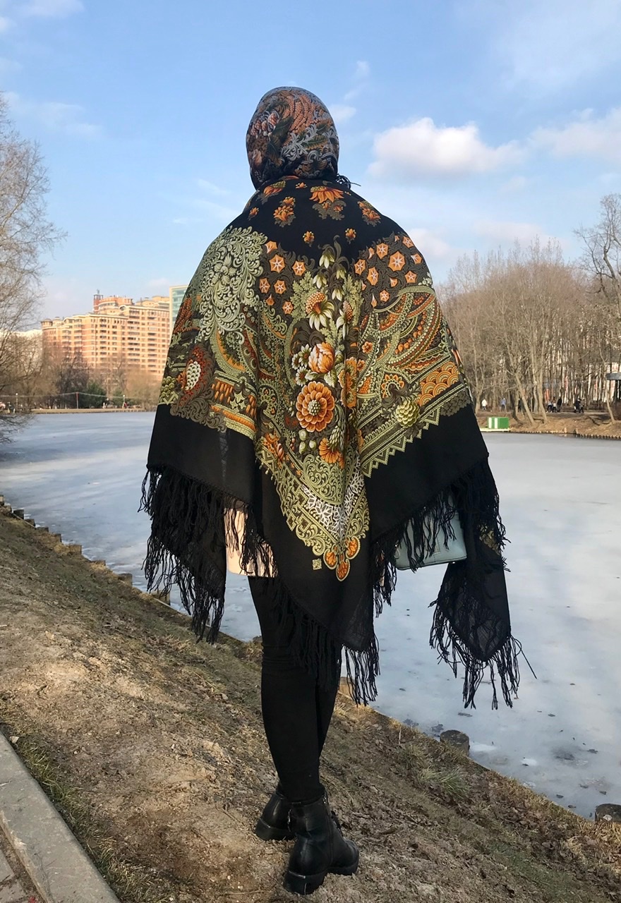 Демонстрируем ношение платков и шалей.