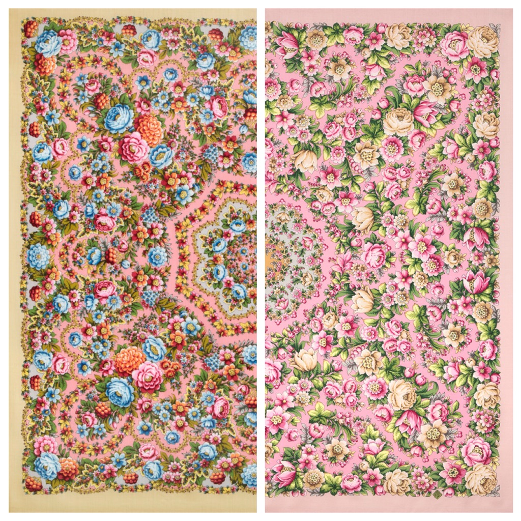 Хочу какой-нибудь розовый платок, вернее шаль, никак не могу определиться. Соловьи не слишком девочковый, нежнятина, нежнятина, как думаете? А Павловопосадский кажется слишком жарким, кайма аж горячая, да и фон тоже. В общем сложно, жаль нет, практически, живых фотографий.