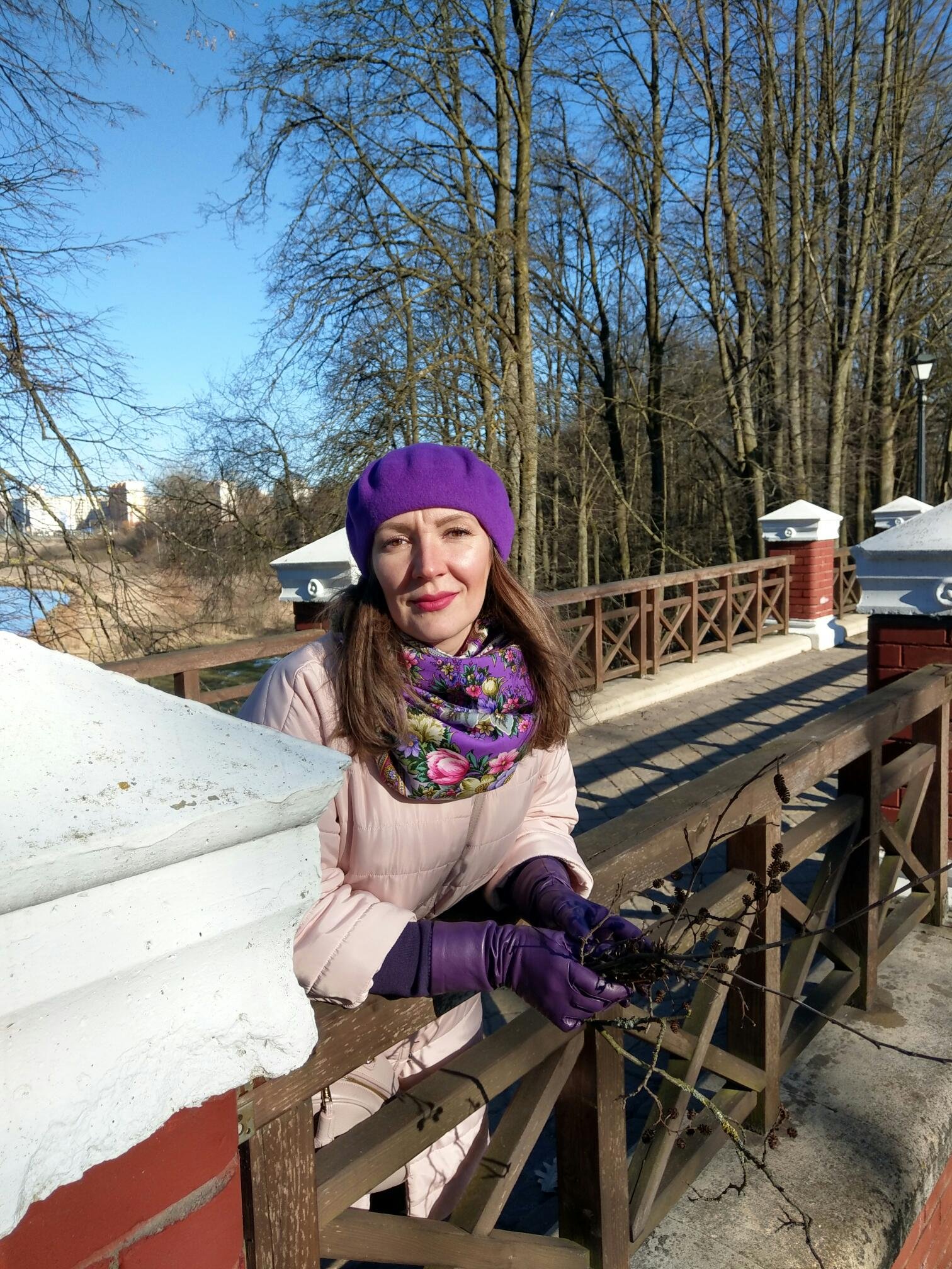 Минчанка - пронзительная сирень на шали, отлично поддержали ее перчатками и беретом - смотрится свежо и по весеннему сочно! Прелесть!!