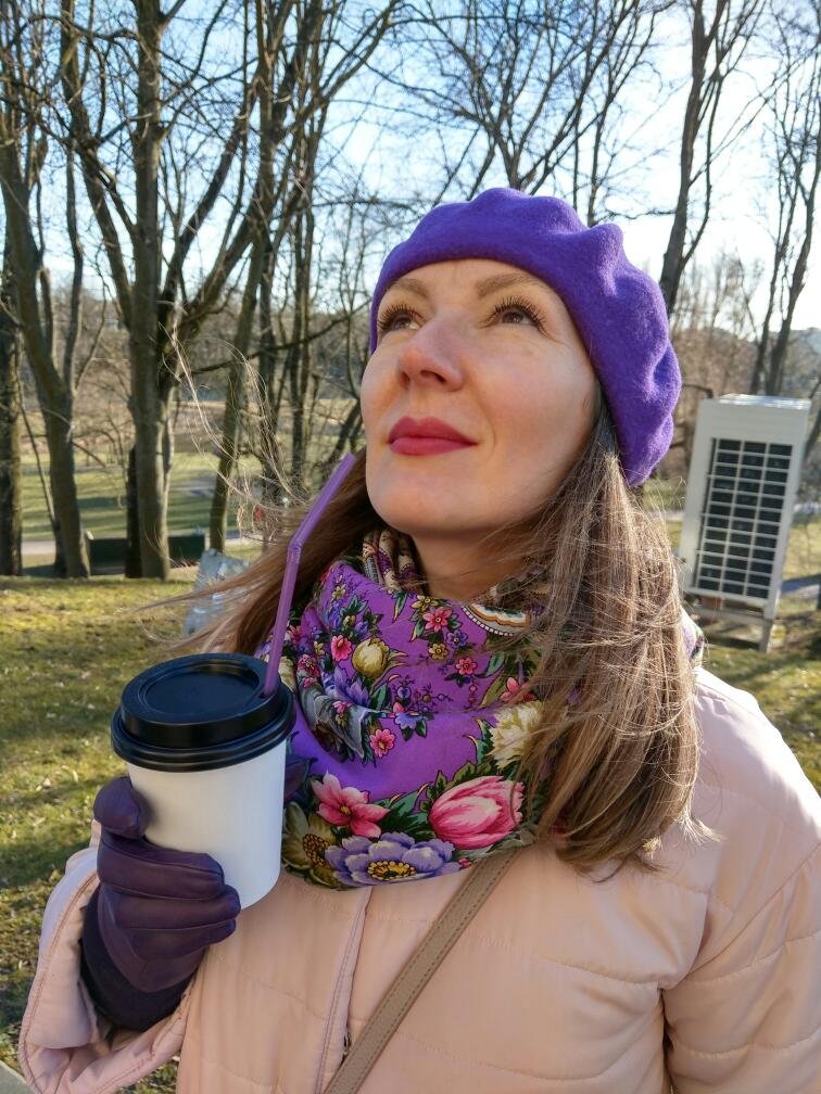 Минчанка - пронзительная сирень на шали, отлично поддержали ее перчатками и беретом - смотрится свежо и по весеннему сочно! Прелесть!!