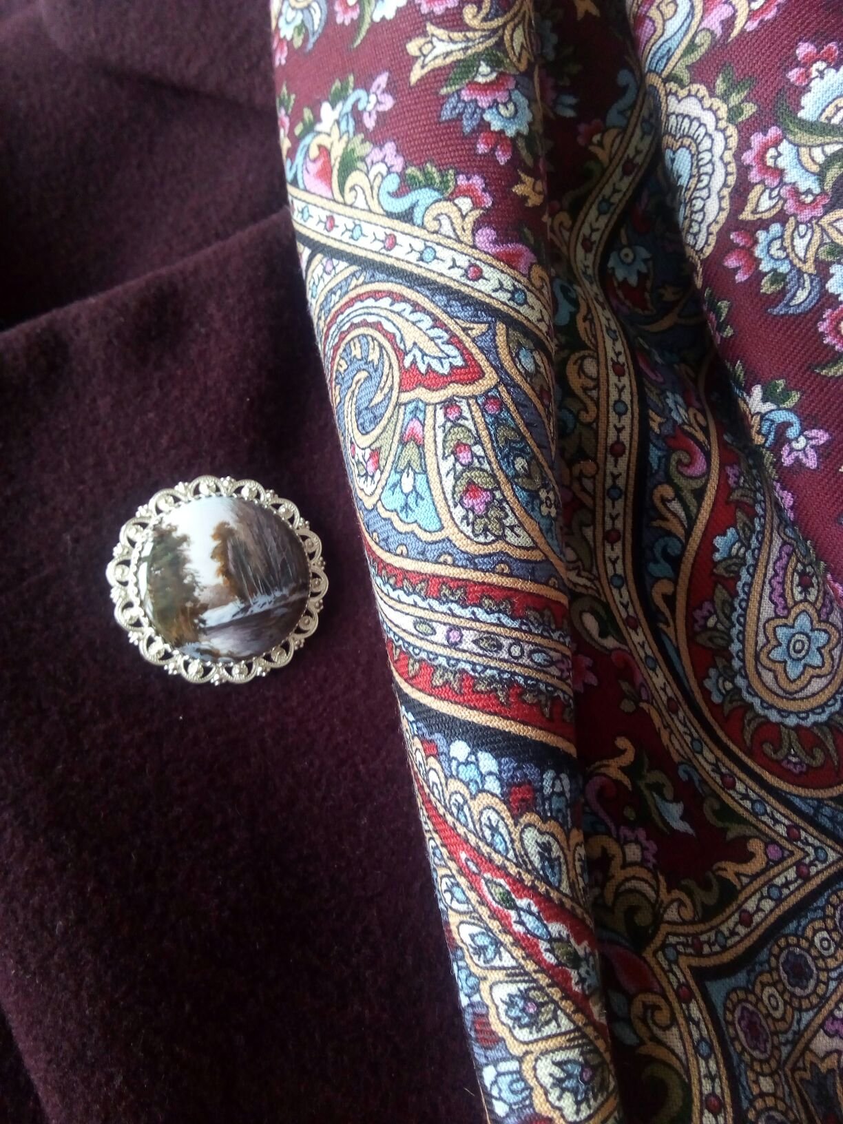 Осколки февральского настроения: пейзажная брошка ростовская финифть и шаль Знойный Ветер 18.