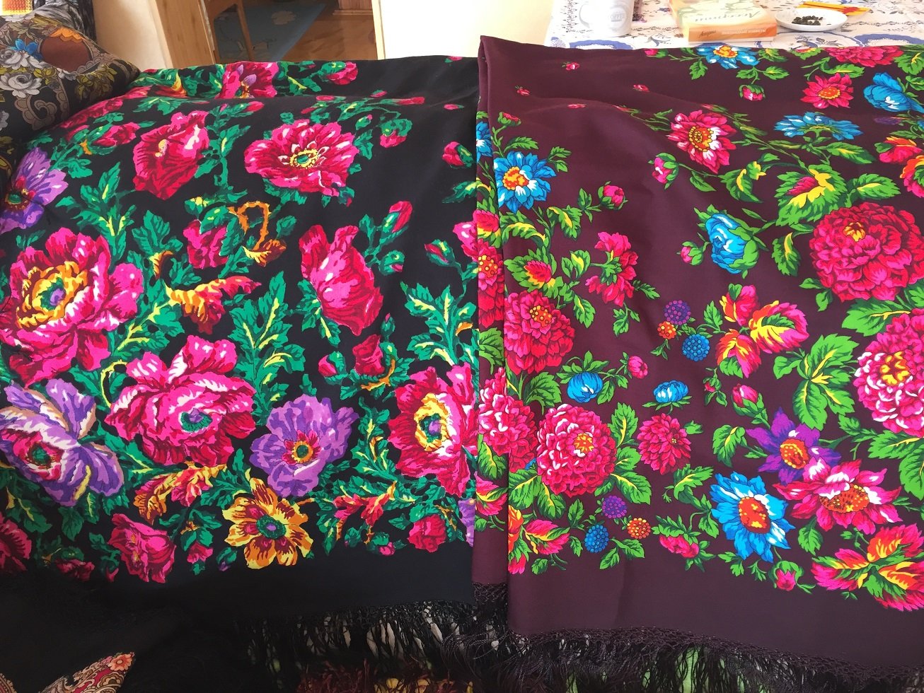 И вот ещё подтверждение вариативности печати и в старых платках: Вера-Бусинка поделилась со мной фотографиями двух Бархатных-5.