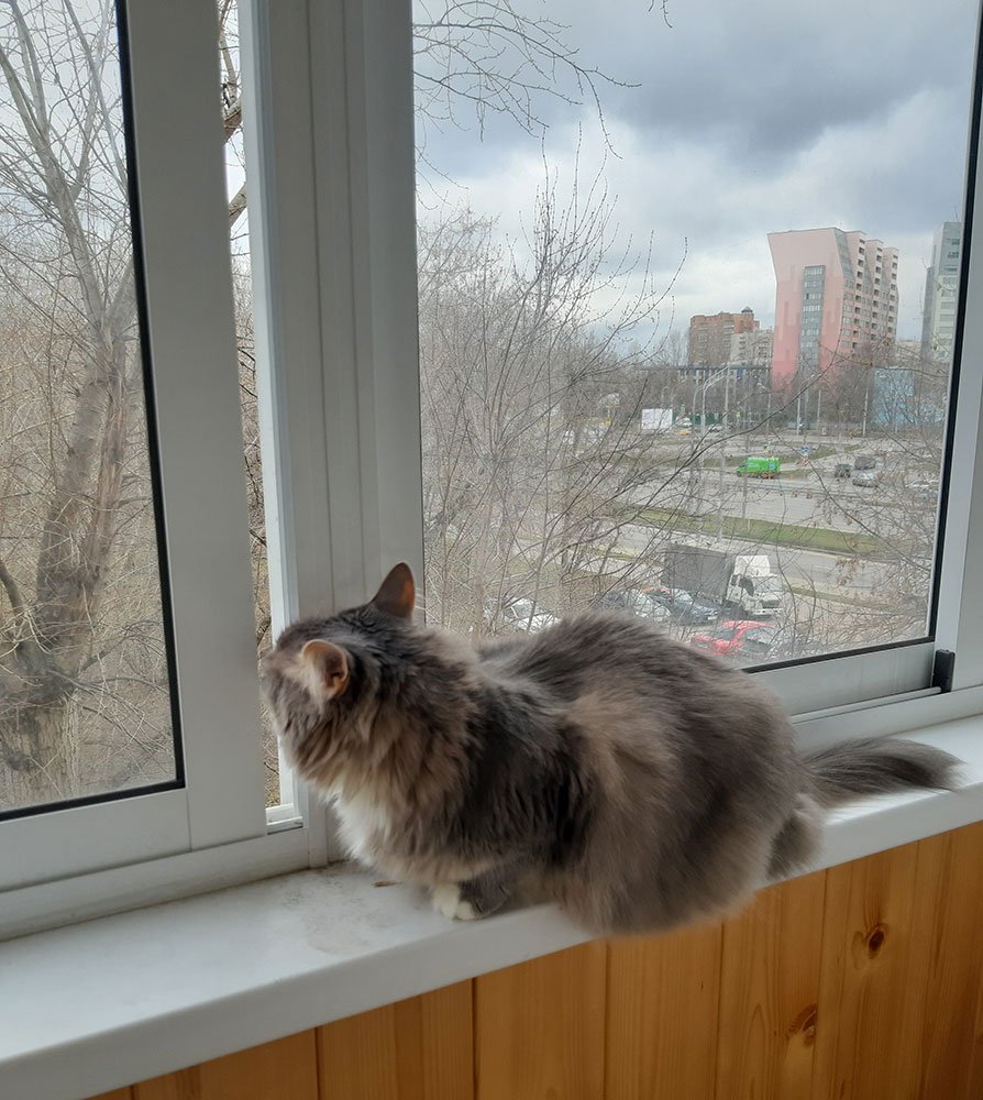 Смотрит на меня через окно, нагулялась, глаза квадратные, срочно пустите домой.