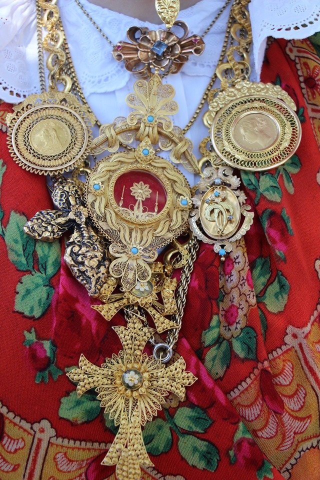 Платки из тонкой шерсти, всегда с шерстяной бахромой 10-12 см, сплетенной вручную, используются для ношения на голове и груди. Они всегда фабричного производства и известны как австрийские платки. Португальские торговцы, вероятнее всего, ввозили их из Австрии.