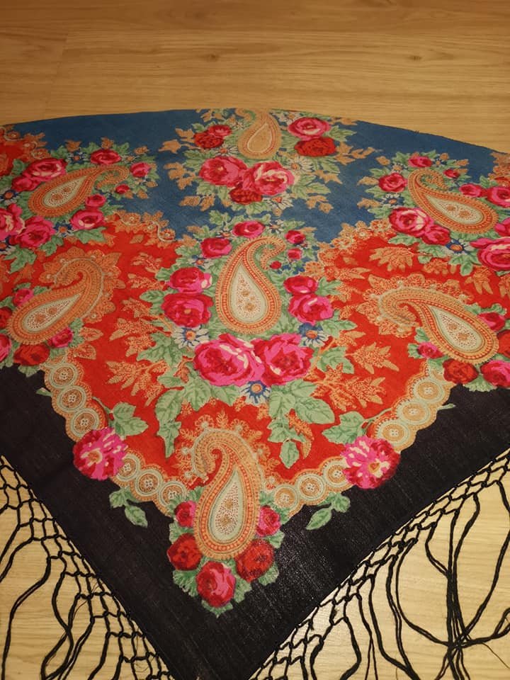 Сначала показалось, что это фото предыдущего платка. Но оказался другой рисунок, хотя цвет один-в-один.