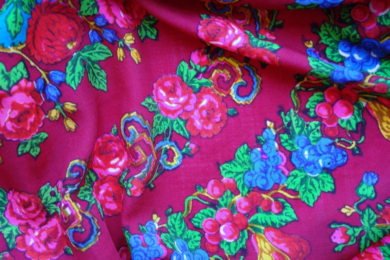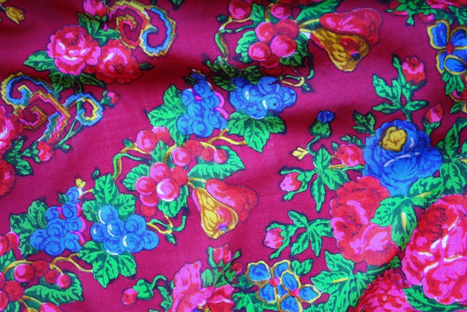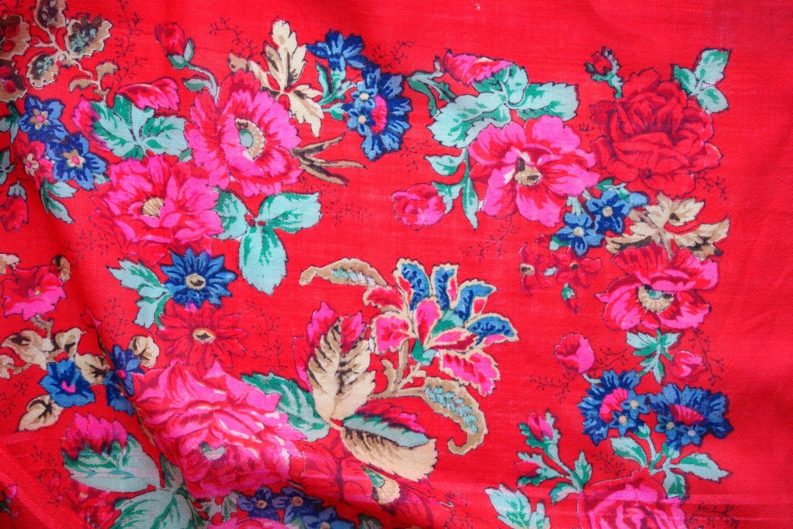 Тонкая шерстяная ткан. Ручная набойка. Размер 130х130