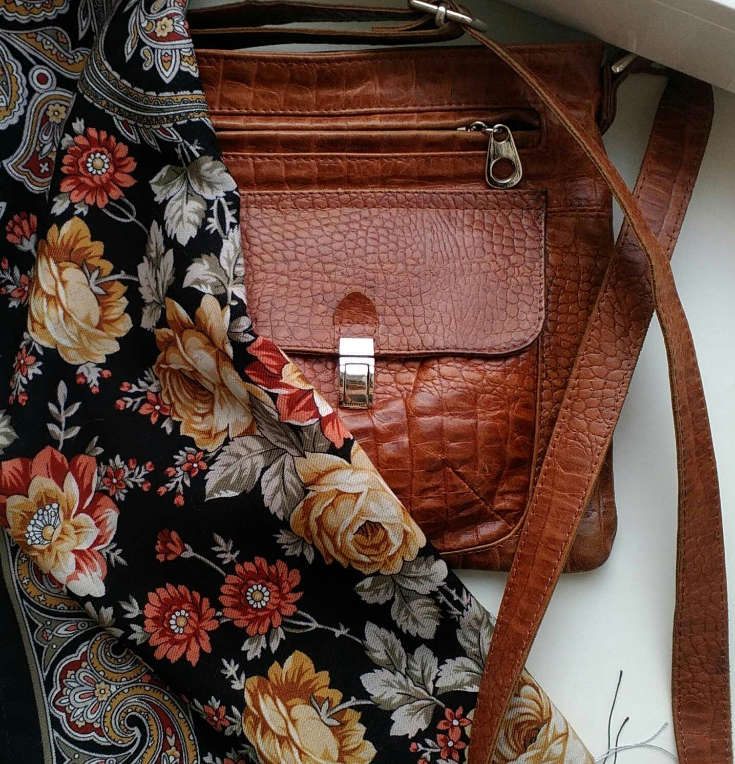 А эта сумочка тоже из Рима. К ней старинка , оставшаяся от моей бабушки. Платочку очень много лет...