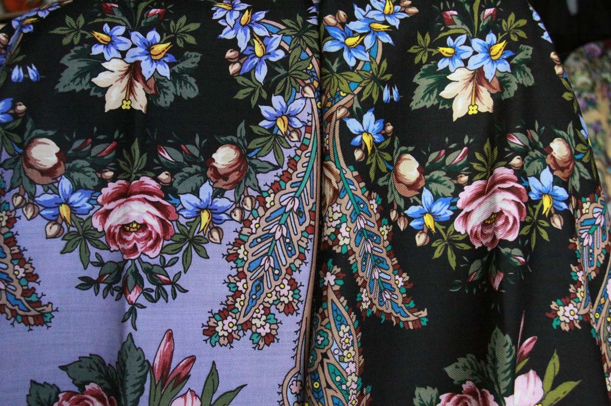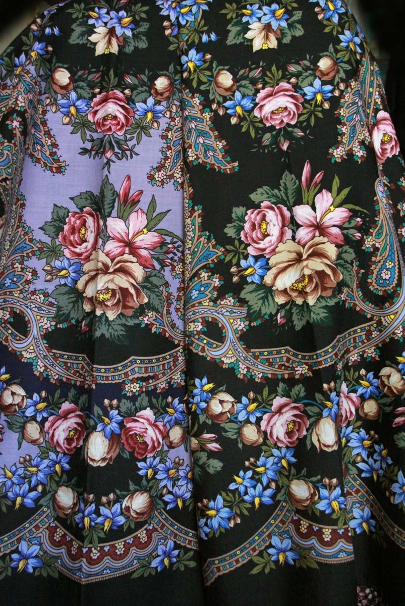 Бархатная ночь сильно хамелеонит (у меня) при фотографировании. Зелень ( лишайник) 19 колорита уходит все время в серый. Яркий и насыщенный платок в реальности.