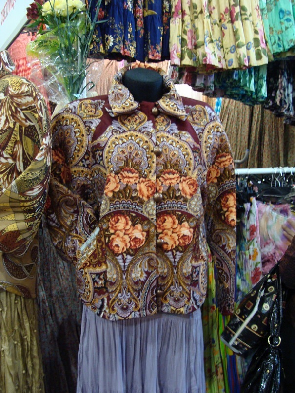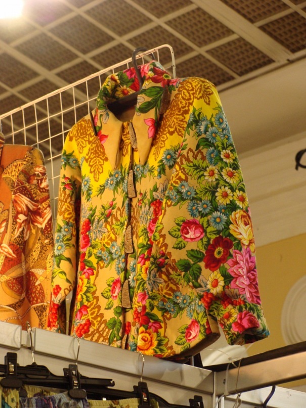 Спасибо за фото, я бы постеснялась фотографировать, или бы пришлось попросить разрешения. :oops: (Кликните, чтобы почитать, что спрятано под катом).... Я видела в Москве изделия Чернышевой (мне так и сказали, мастер из Питера). Я взяла в руки, рассмотрела, было время оценить качество (ничего не примеряла, так как все изделия начинаются с размера 48). По-моему мнению, изделия из лоскута, причем, степень яркости прокраса оставляет желать лучшего.