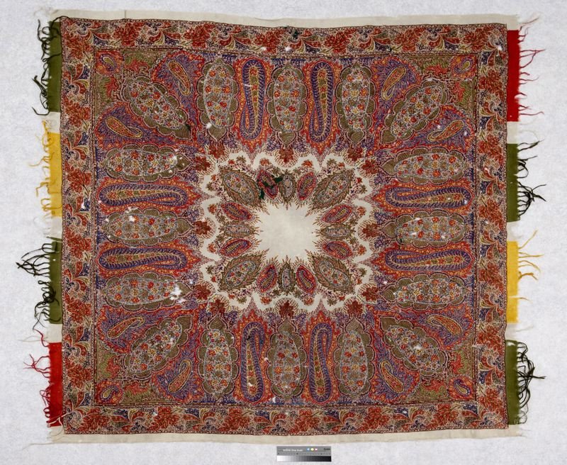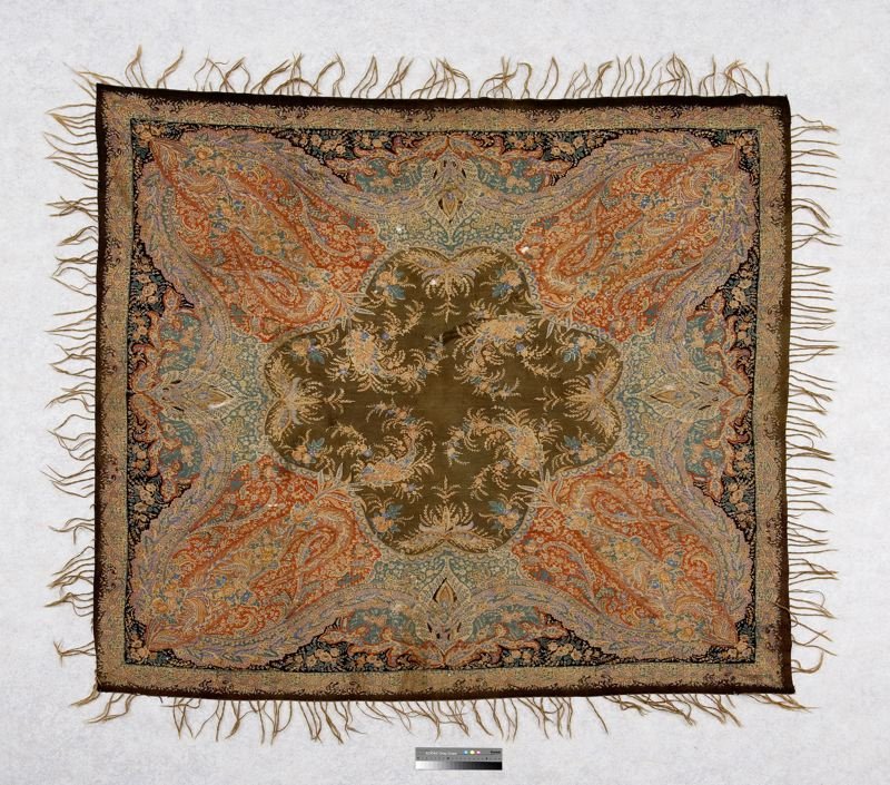 Шаль, овечья шерсть, хлопок, набивной рисунок из пейсли и цветов, Slottsfjellsmuseet (Тенсберг, Норвегия)