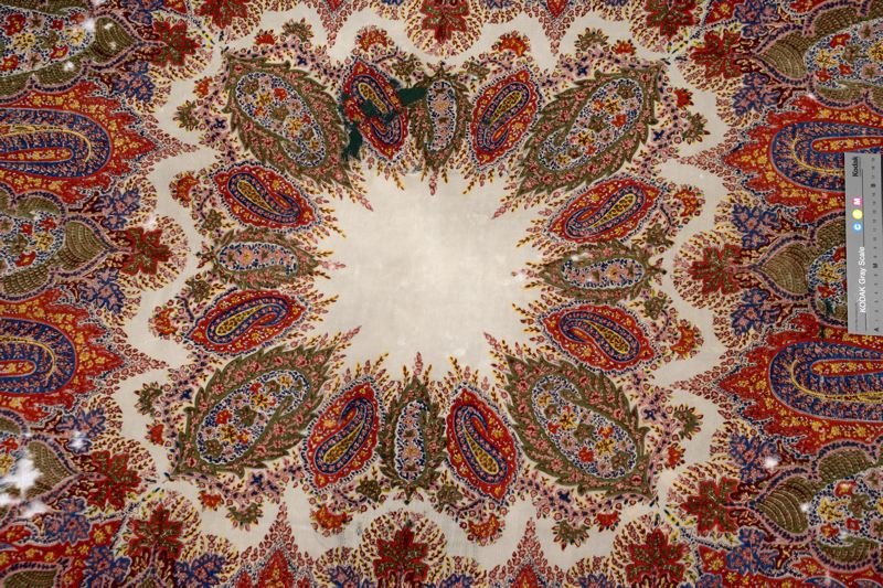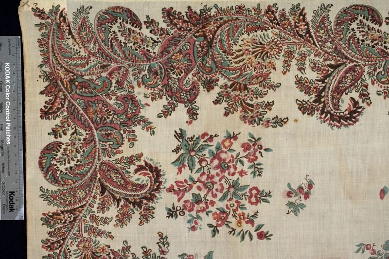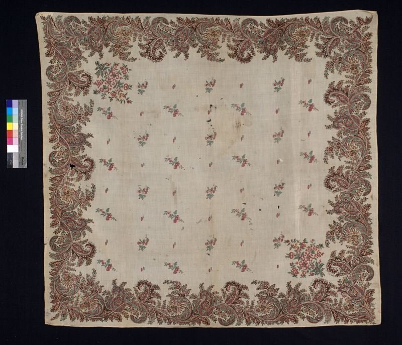 Шаль, овечья шерсть, хлопок, набивной рисунок из пейсли и цветов, Slottsfjellsmuseet (Тенсберг, Норвегия)