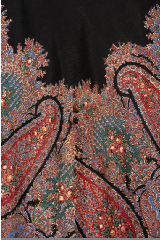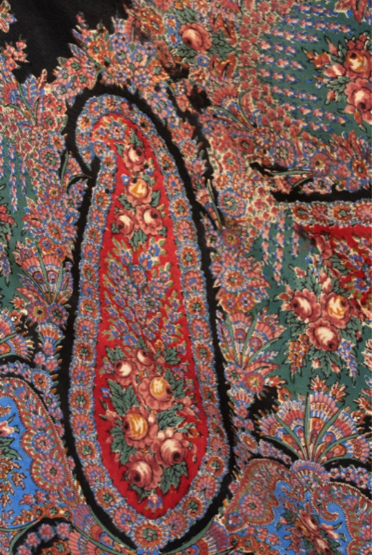 Шаль, овечья шерсть, хлопок, набивной рисунок из пейсли и цветов, Slottsfjellsmuseet (Тенсберг, Норвегия)