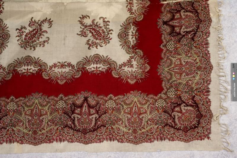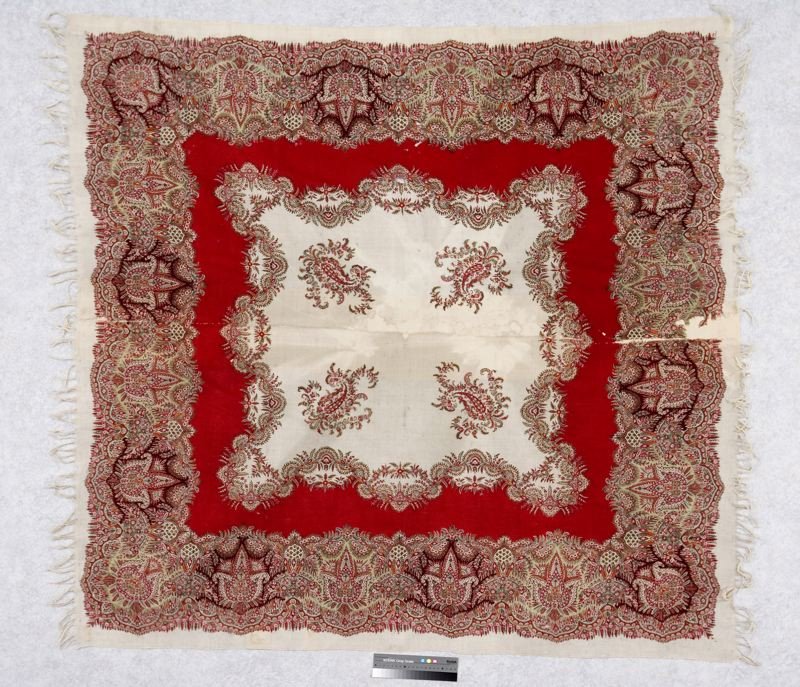 Шаль, овечья шерсть, хлопок, набивной рисунок из пейсли и цветов, Slottsfjellsmuseet (Тенсберг, Норвегия)