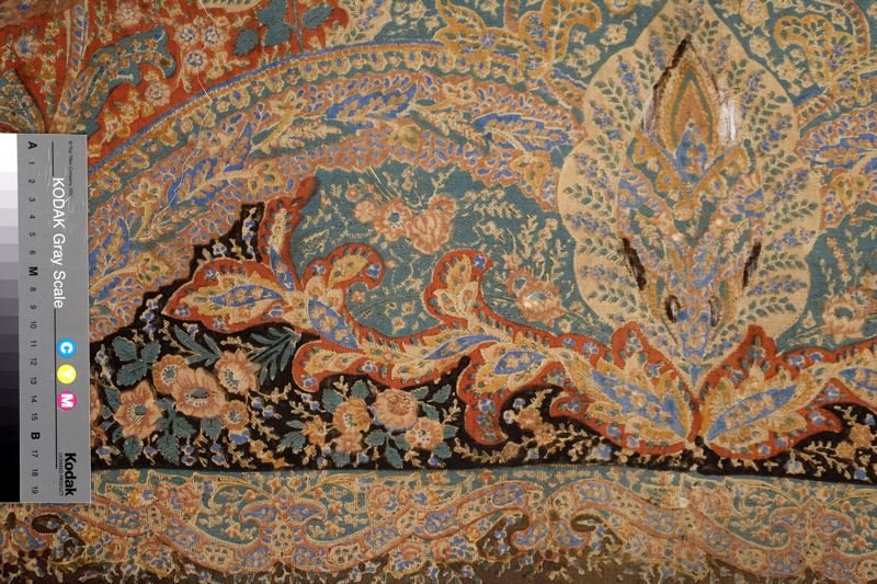 Шаль, овечья шерсть, хлопок, набивной рисунок из пейсли и цветов, Slottsfjellsmuseet (Тенсберг, Норвегия)