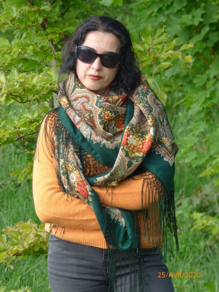 Не зря заказали Майю-24. Яркая, красивая, нарядная шаль, и вам очень к лицу! С колоритом точно угадали. ::