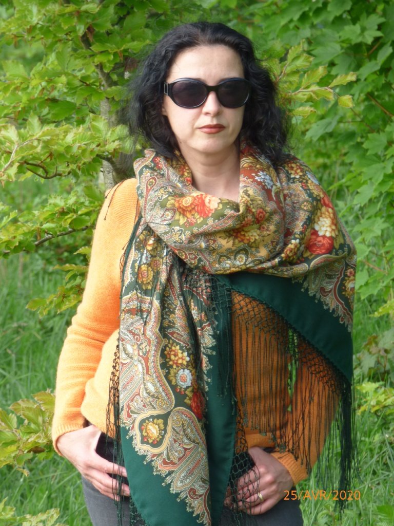 Не зря заказали Майю-24. Яркая, красивая, нарядная шаль, и вам очень к лицу! С колоритом точно угадали.