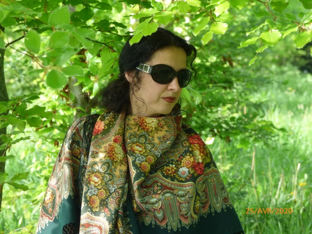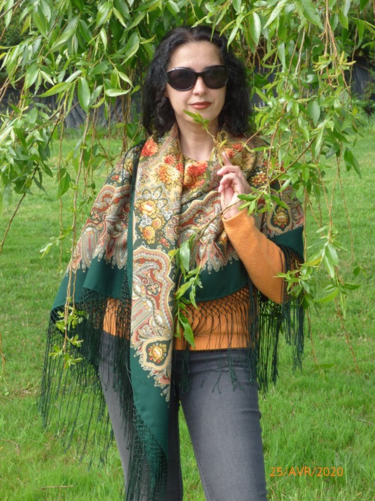Не зря заказали Майю-24. Яркая, красивая, нарядная шаль, и вам очень к лицу! С колоритом точно угадали.