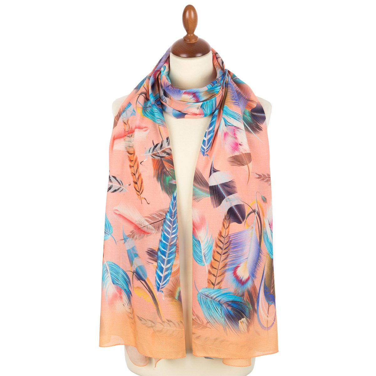 Палантин шерстяной набивной "10839-12", вид 12, 80х230 см На манекенах